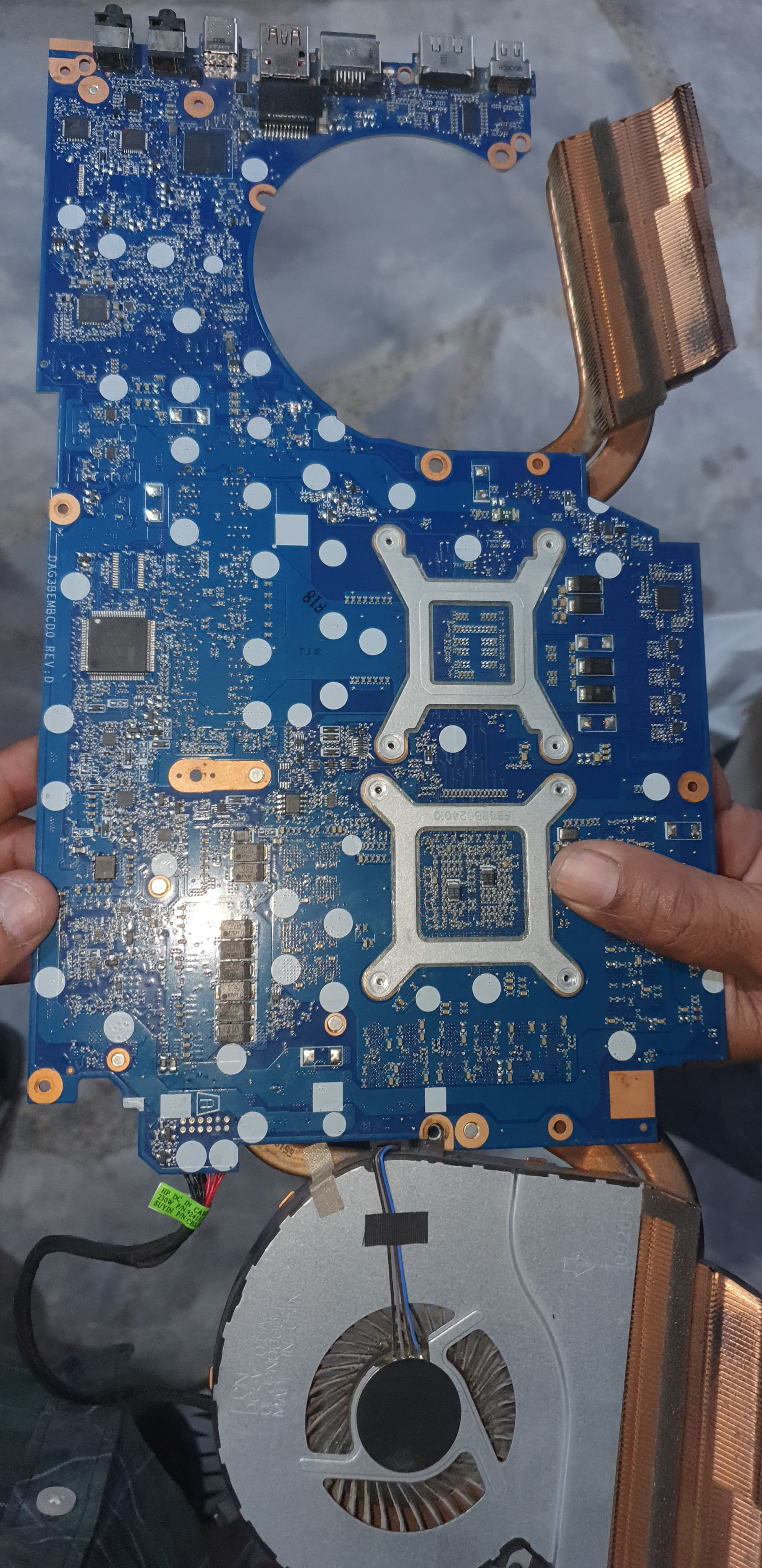 I do not know the history of the motherboard, only that the old chip was removed because it was dead apparently. When the on button is pressed, the laptop on battery alone just shows a solid white light on the side and same on...-