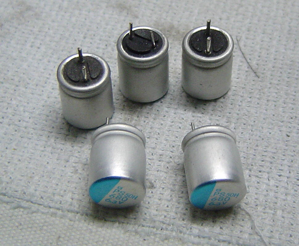I just bought some Solid Capacitors to "DIY Poly Mod" my graphic card and found some of Sanyo SVP series (SMD) has different bung from the others (somelike bull eye). Possibly they are counterfeit?