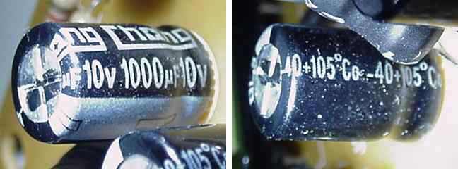 For example, four of the cap on the board are labeled: Chang / 470uf / 10v / 105c / -40+