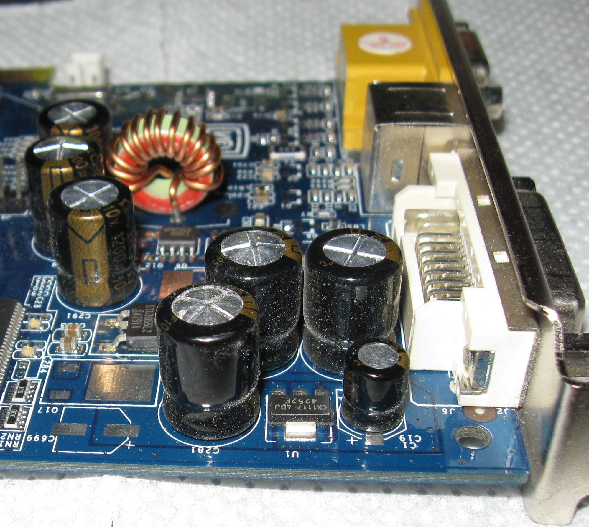 Removed it today to replace it with a Radeon 9250, basically for dual monitor support and found almost all capacitors swollen, even though the card was working with no issues whatsoever...