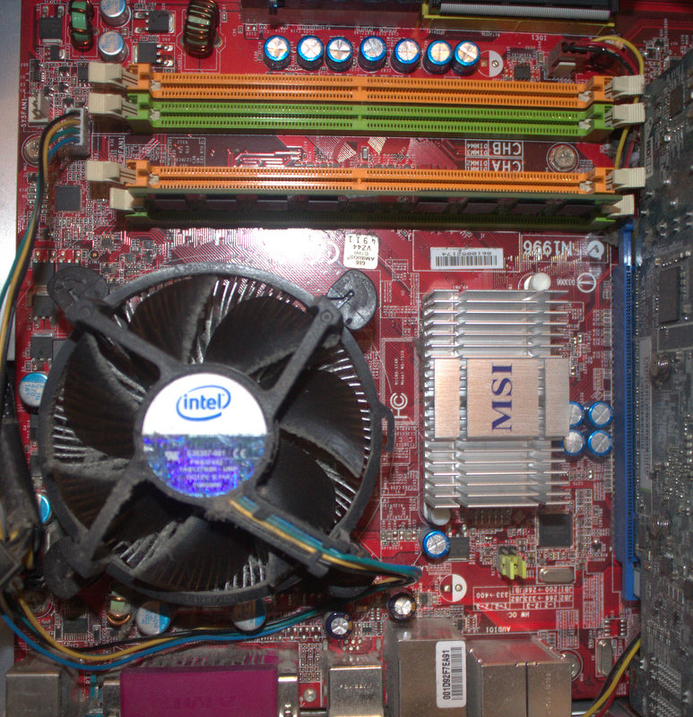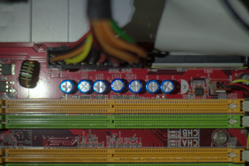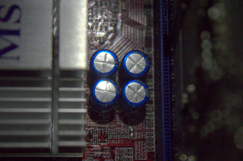 The caps i posted earlier did'nt bulge abit, but i found atleast one bulging cap near the north bridge, the one just over that is slightly domed too, but not as bad.