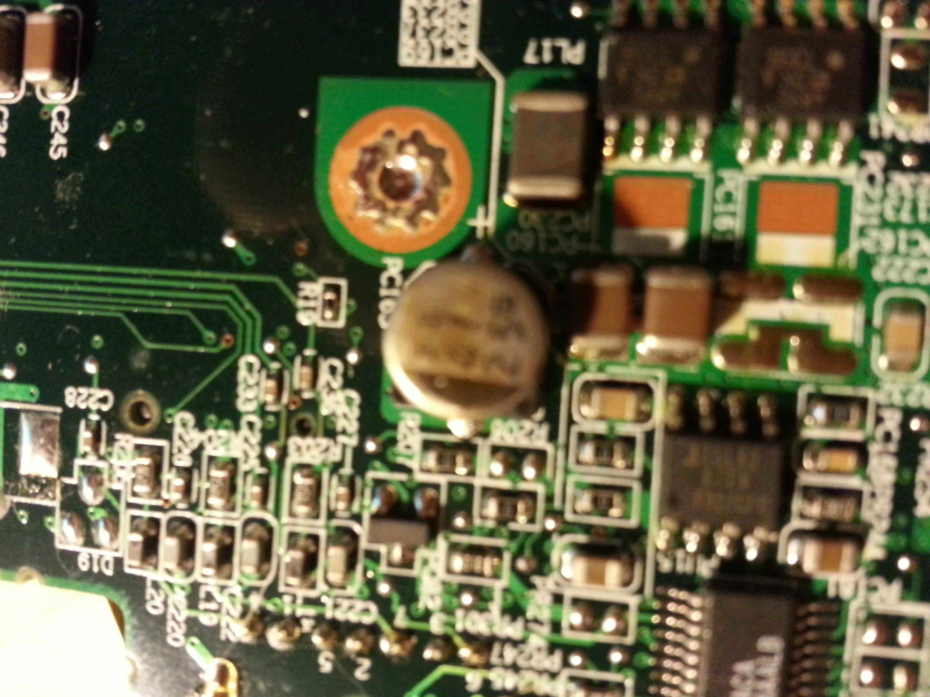 i have included 2 pics. one is of the suspect bad cap and the other is of the exact same type cap located elsewhere on the mobo.