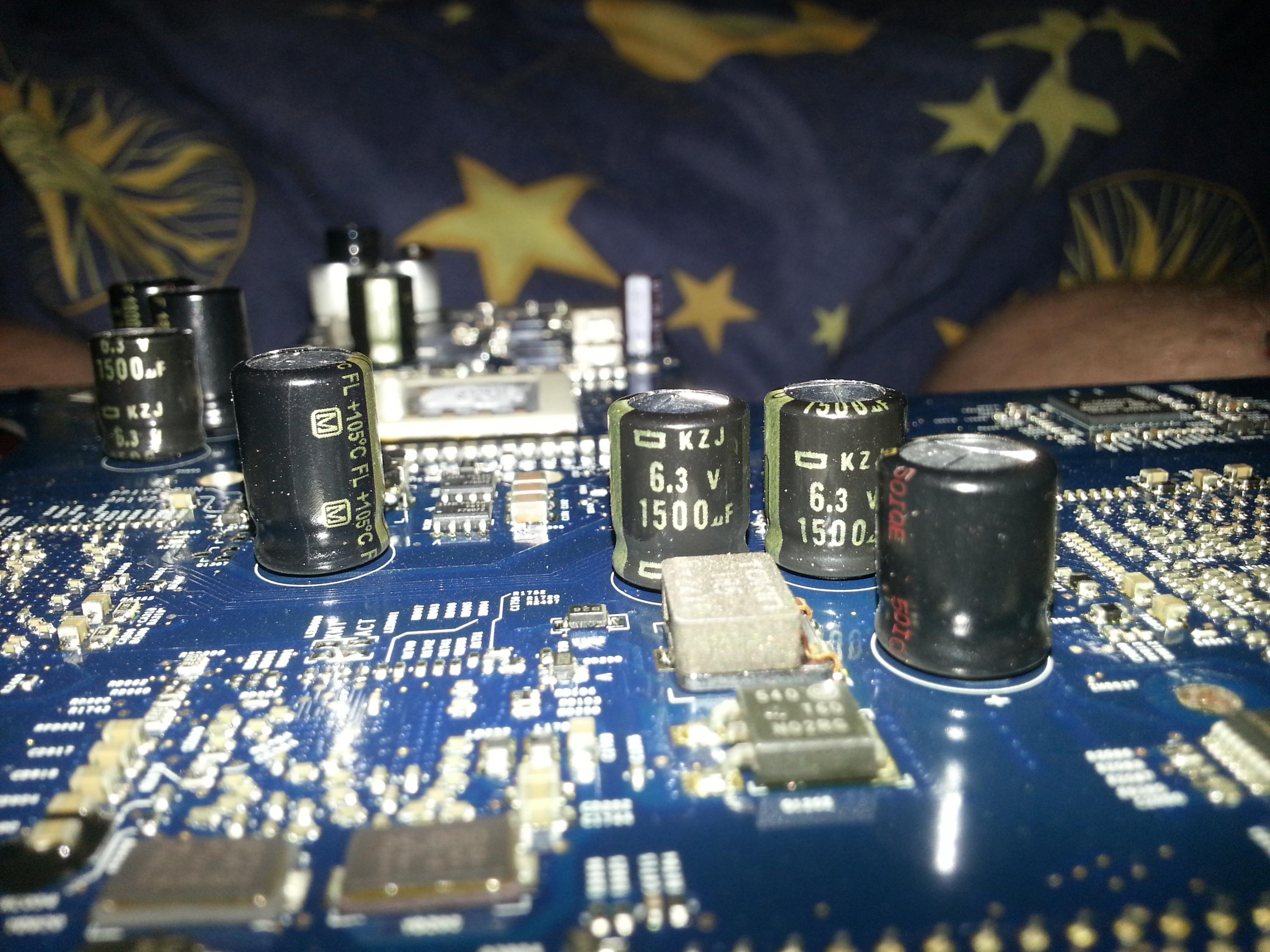 I was wanting a 2nd opinion before I get a soldering iron and new caps. Some pictures of all the mobo caps are attached. There are only two faulty as far as I can see. The first 8 pictures contain the faulty ones I can see.