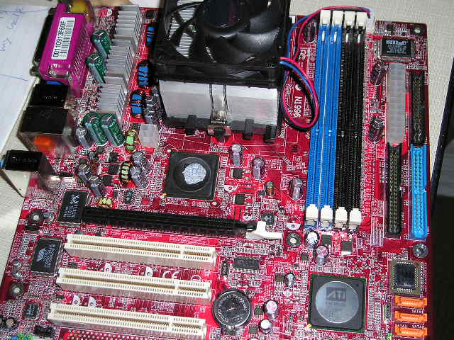 The mobo is a MSI (MS7093) also it says N1996 near the memory, the chip set is ATI IPX 400.... 939 socket with a 2.4 CPU.