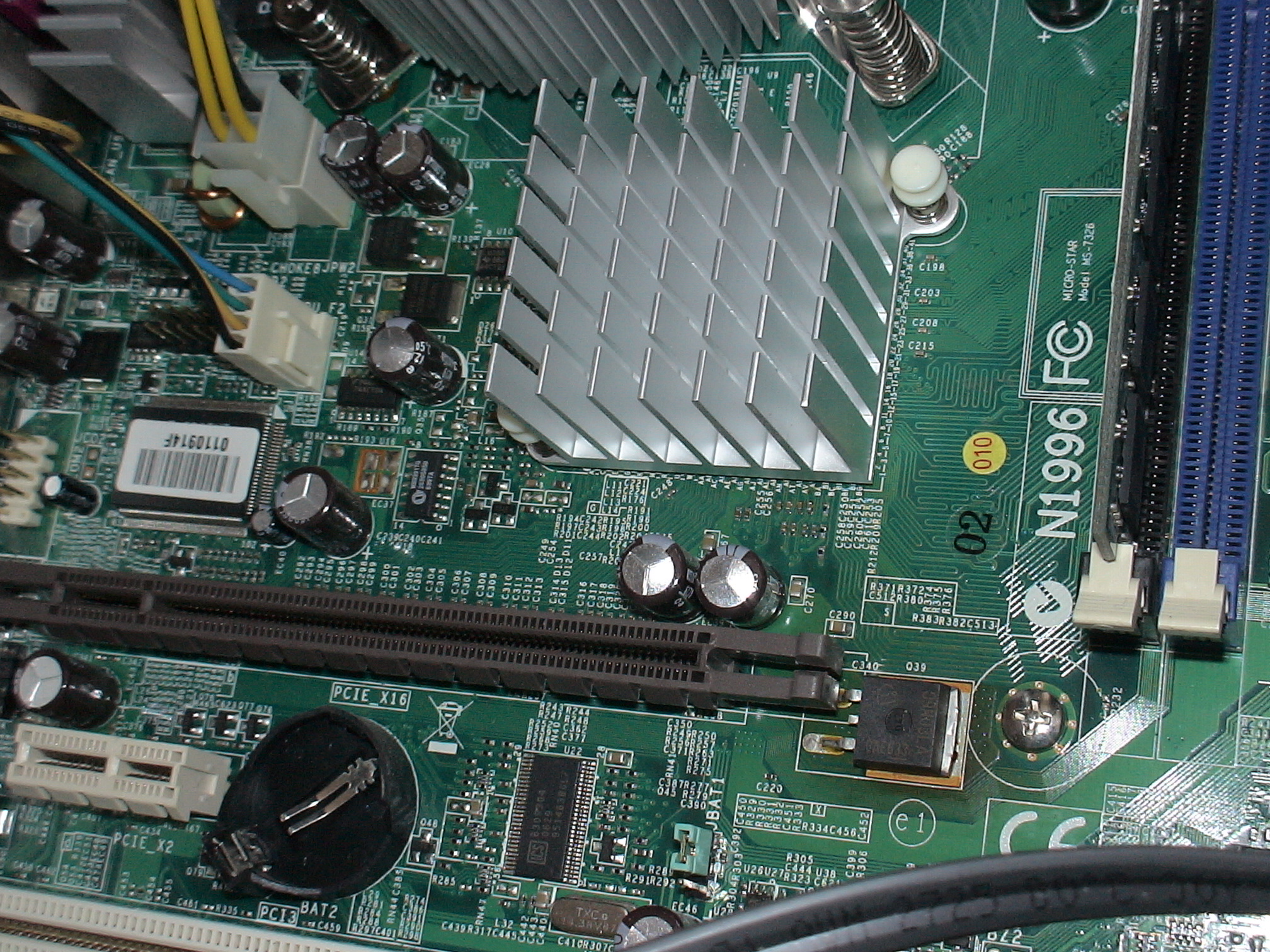 When I start my computer (ACER Aspire T671 AST671-FP820A) the fans are turning but that's all. After trying many things (other PSU, new graphics card, new CR2032 battery on the mobo(It was testing less than 1V)) I finally started looking closely at the caps and I found 3 bulging caps(see picture). When I measure resistance, one is showing around 0,35 ohm while the others are at 0.