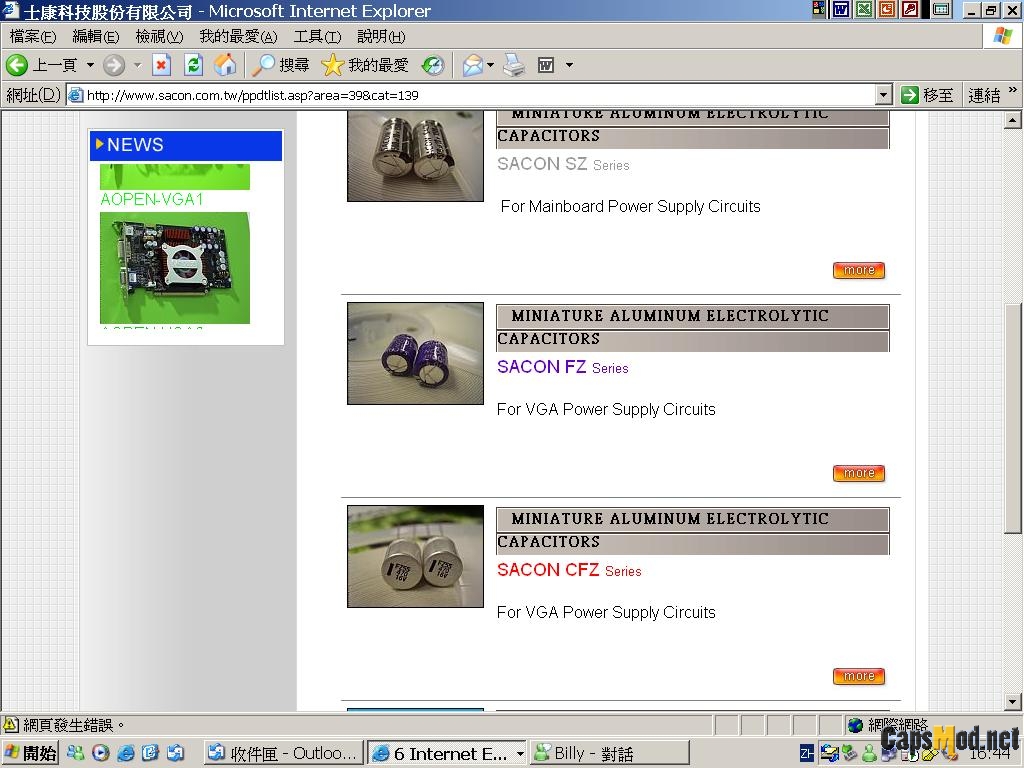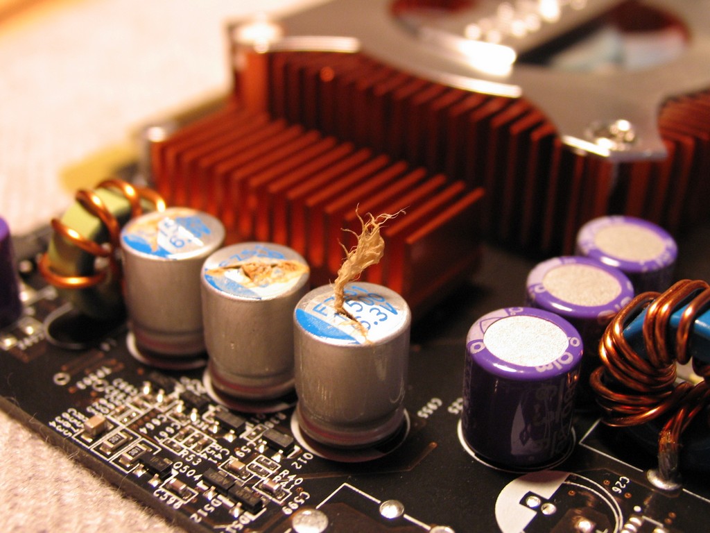 I just found these hairy electrolyte caps on my video card, it's an AOpen Aeolus PCX6600GT-DV128.