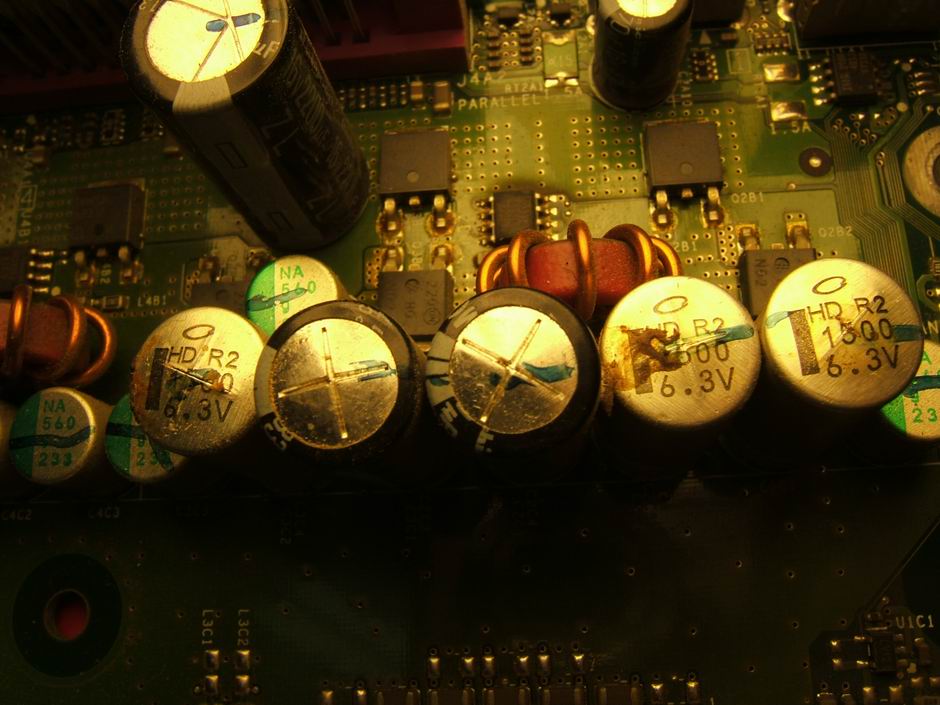 . The two caps in the center are Rubycon 3300uf 6.3v HM.