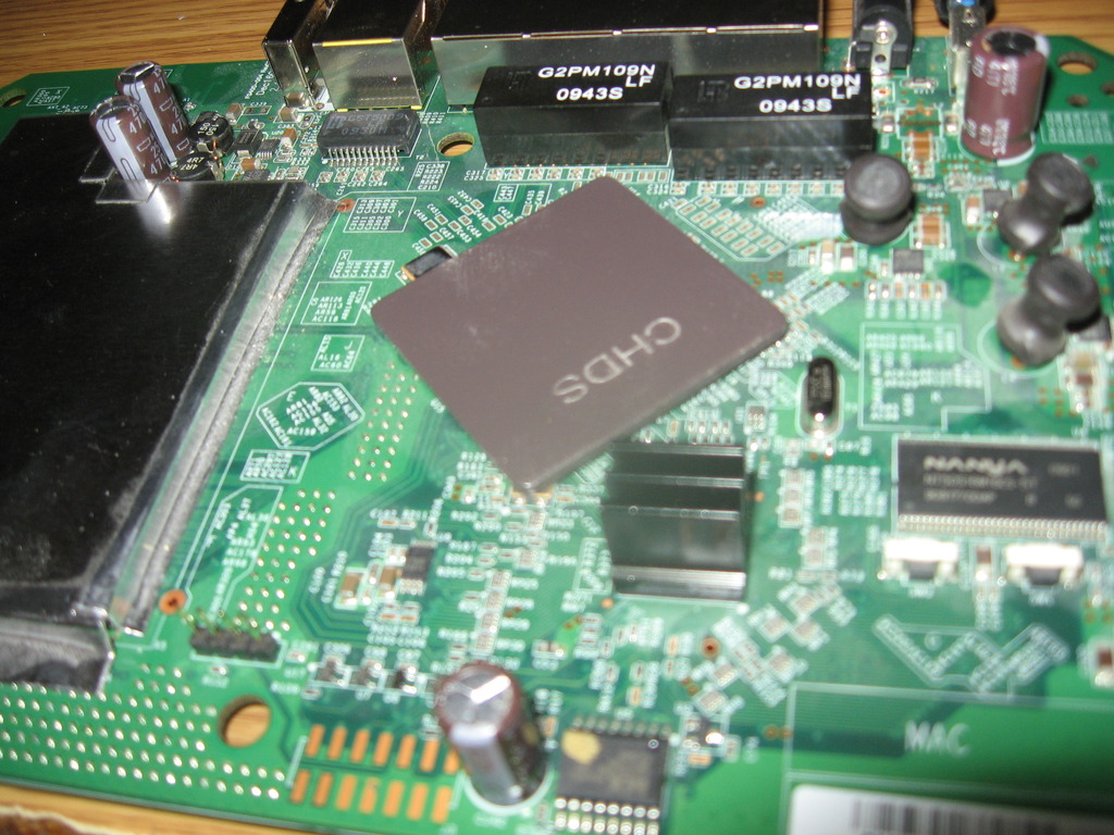 After a helpful person over on the Netgear forum got me on the "failing hardware" track (I was so busy trying to find a firmware issue, given the 3700's history of having buggy firmware, that I couldn't see the forest for the trees), I opened it up and found this. I also posted this link on the Hall of Shame thread if it looks familiar-- I hope this isn't a problem, but it is pertinent to both: