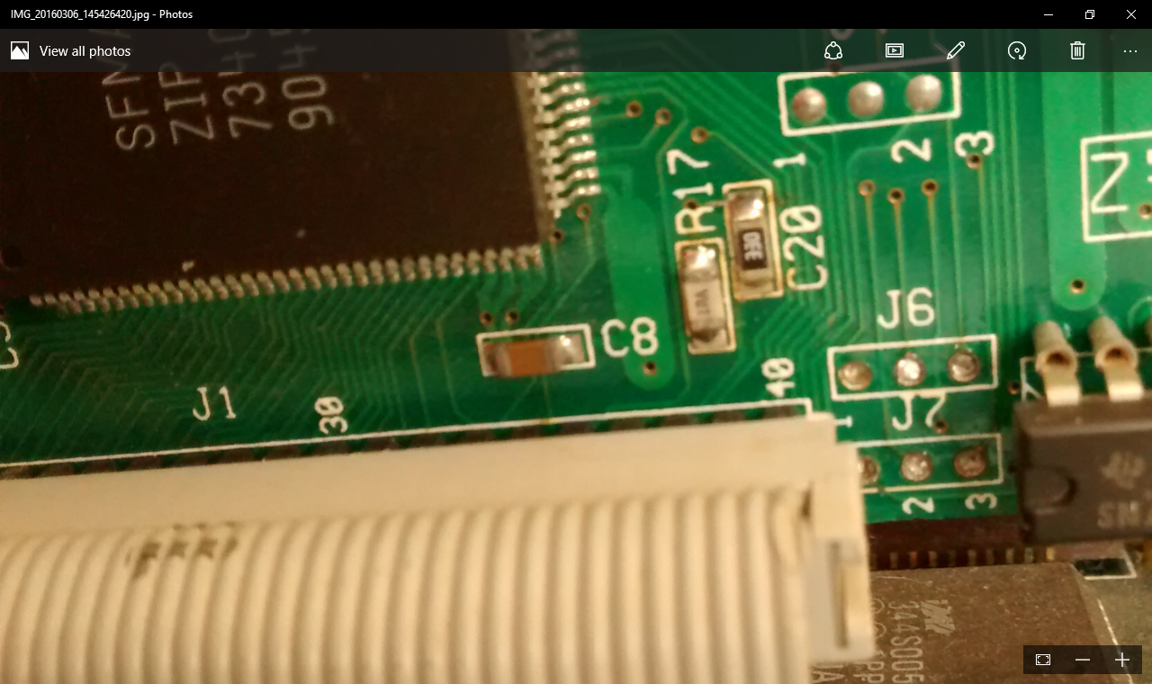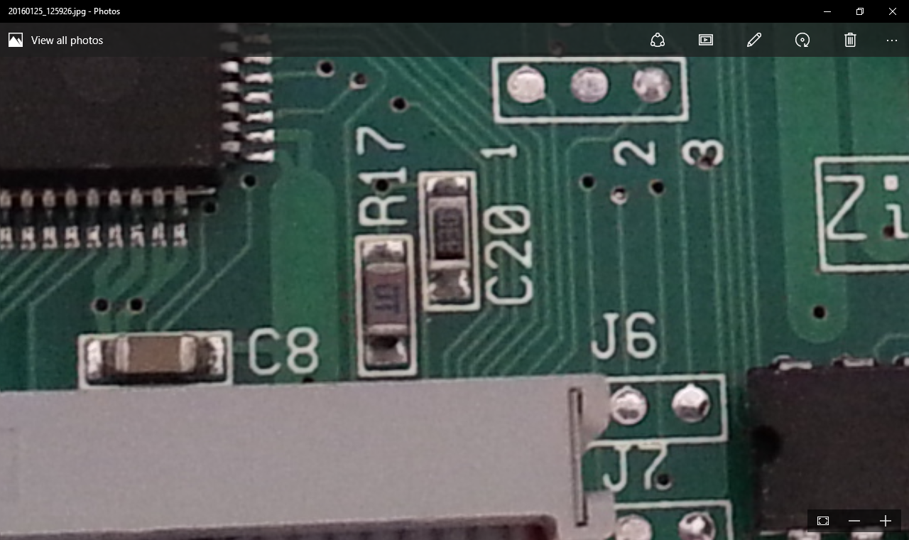 Please help identify value of capacitor at C20. On some boards it looks like underlined 1n (1st photo) while on other boards it looks like vu1 without line (2nd photo). Most of the time the color is not tan but lighter grey (better tolerance?). Could it be 1nF or 1000pF perhaps 5% tolerance or better? I'm repairing a board that has it missing and trying to find the value. Next step is perhaps buy a DIY ESR. Thanks in advance.