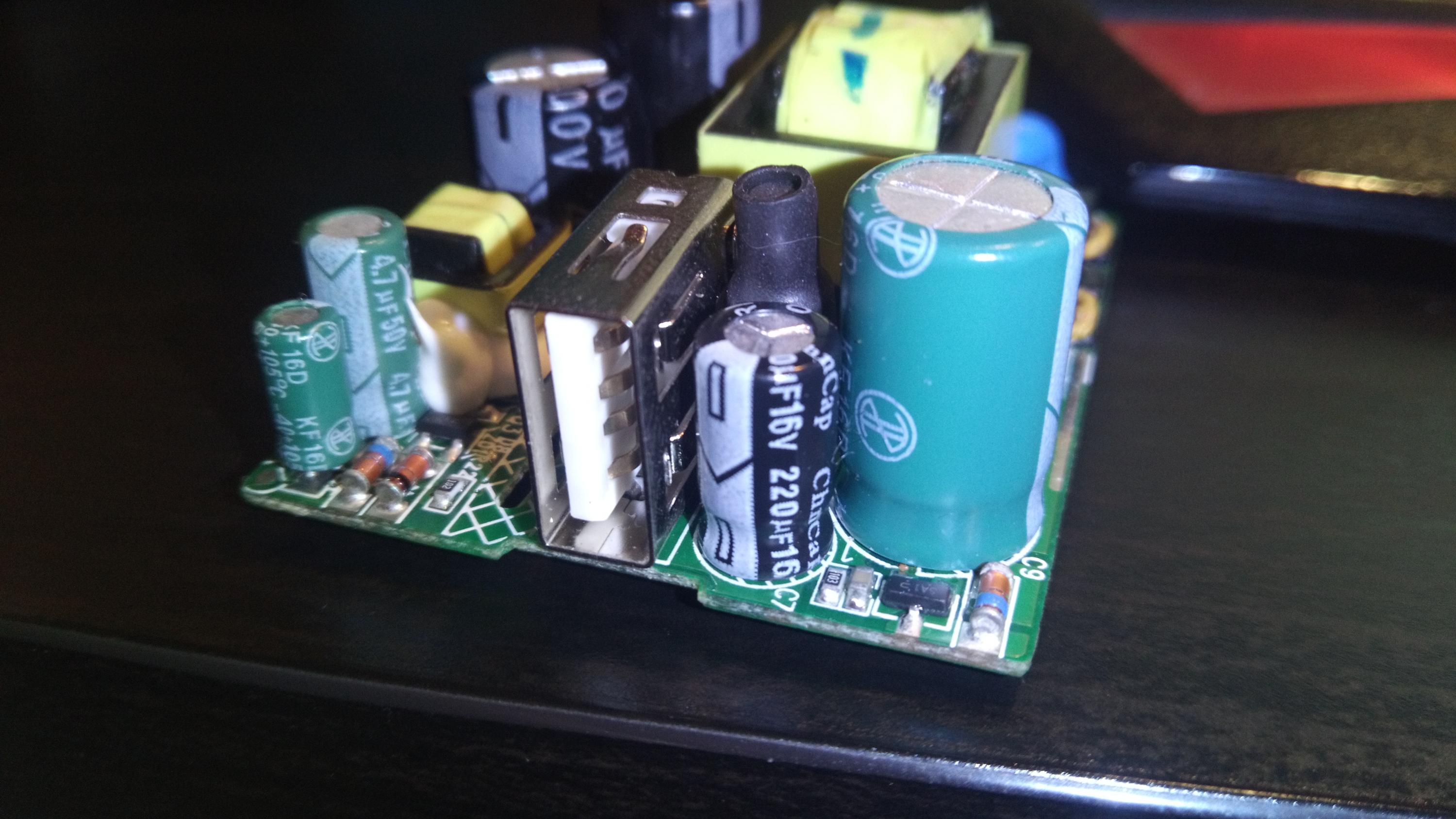 Side note: Newer model of this charger did away with the electrolytics on the output, uses polymer caps now. Edit: Also newer model is QC 3.0.