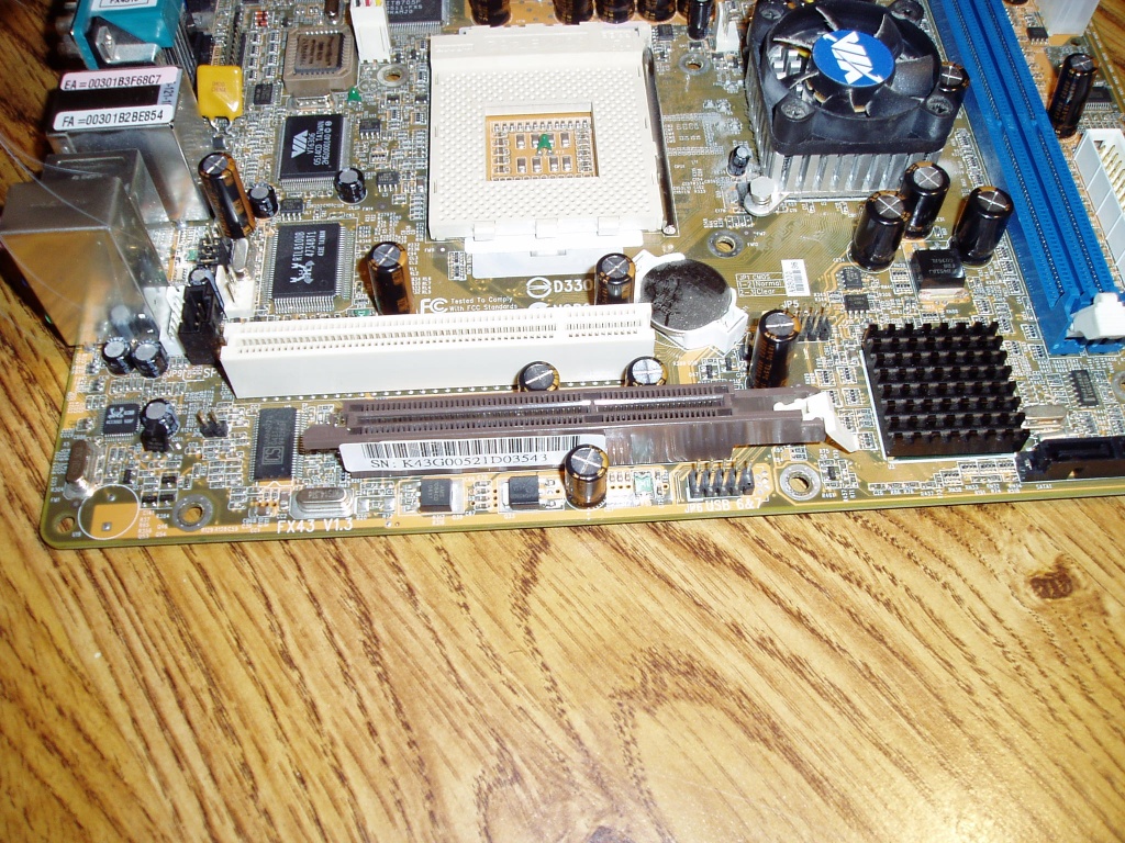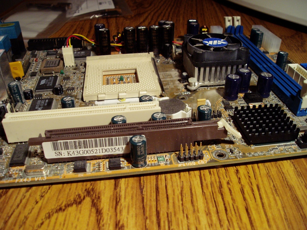 Near the PCI/AGP slots there are several caps. What's in there now are a G-Luxon LZ 1000 uF 10V 8x15 cap. There are 3 caps on the "business" side of the slots, 1 3cm out on the PCI, and two behind the PCI slot (on the non-business side of the card).