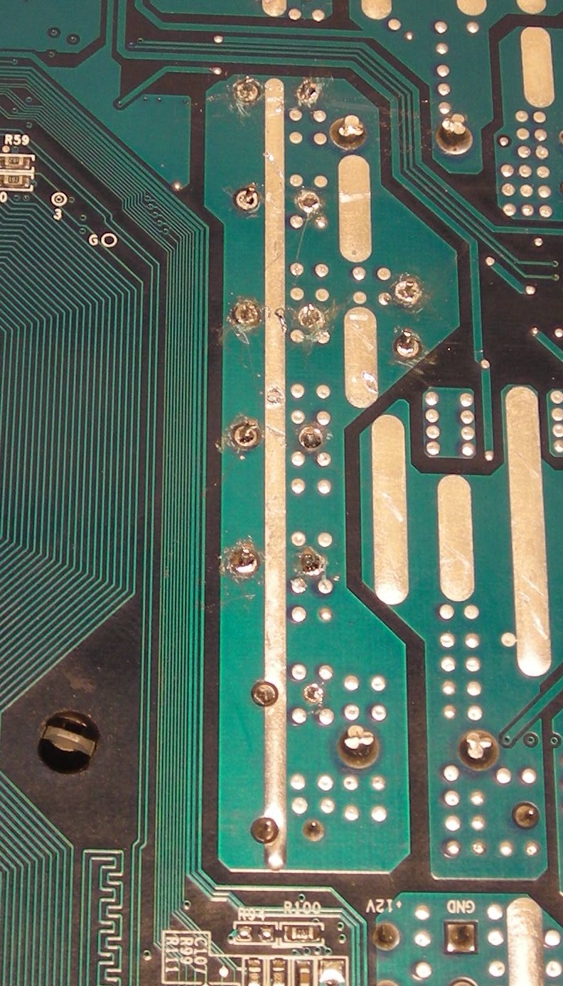 All capacitors are correctly oriented afaik, and leads are all soldered. My friend used the board with bad caps for awhile, so I don't know if this could have caused any other problems, but I assume so.