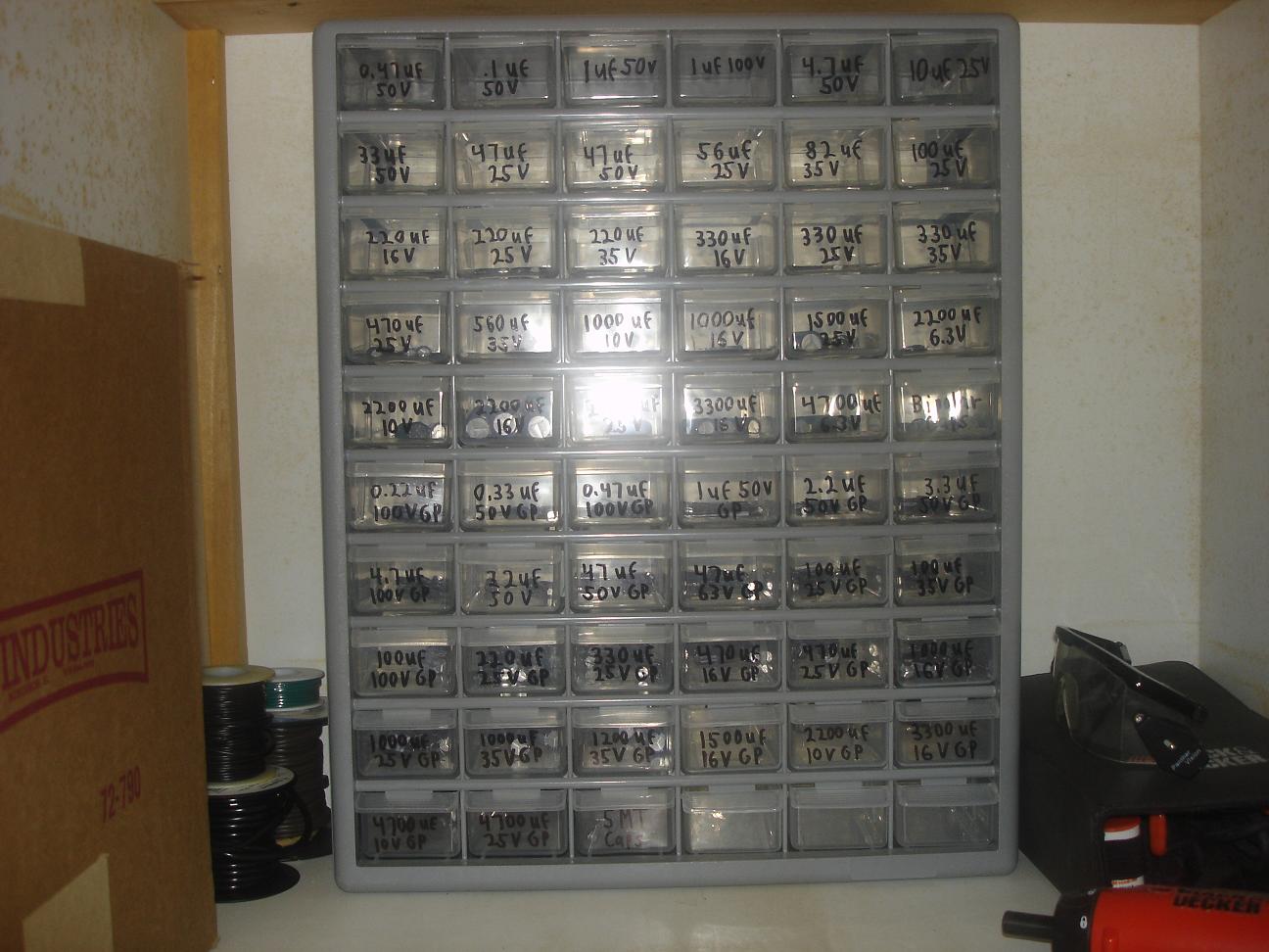 So far, I got 3 shoeboxes, one for 16v and under, one for 25v and over and one for polymer capacitors (mostly empty),