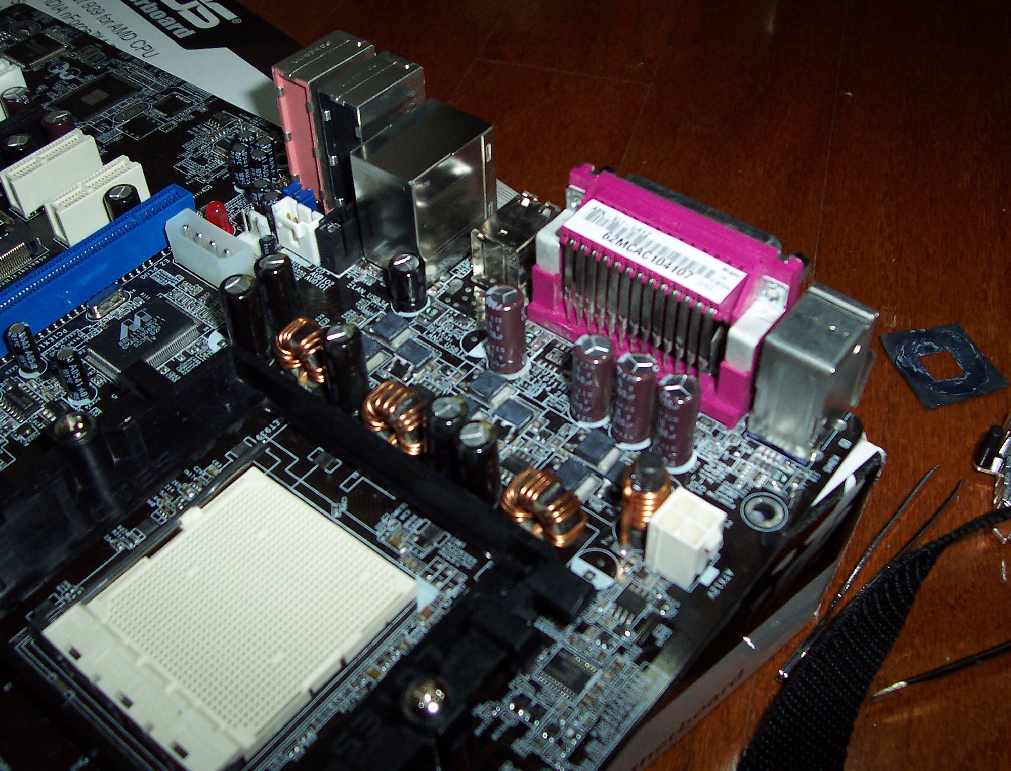 This is from an ASUS A8N SLI mobo, although on my current recapped MSI K8N Neo4 MOBO (see my first recap click here ), I have nearly the same issue (caps r 4x of KZG 16v 1500uF). Perhaps in my last post, the bung has dropped maybe 0.5mm, not 1.5mm as i previously stated.