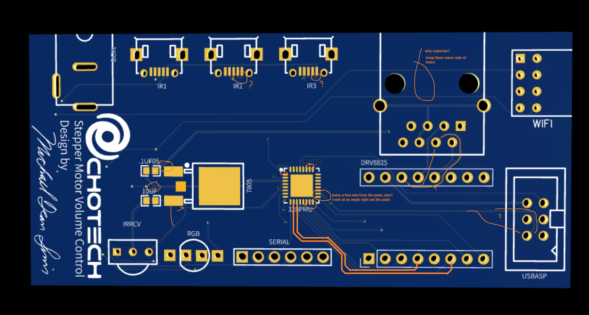 * seems like you could rotate 90 degrees that drv8225 header and move it near the USB ASP header ... and move that other header closer to serial header
