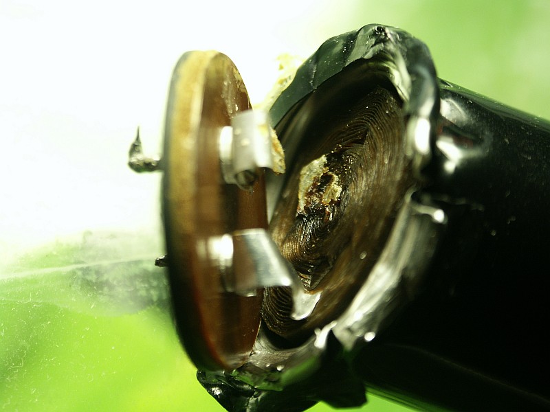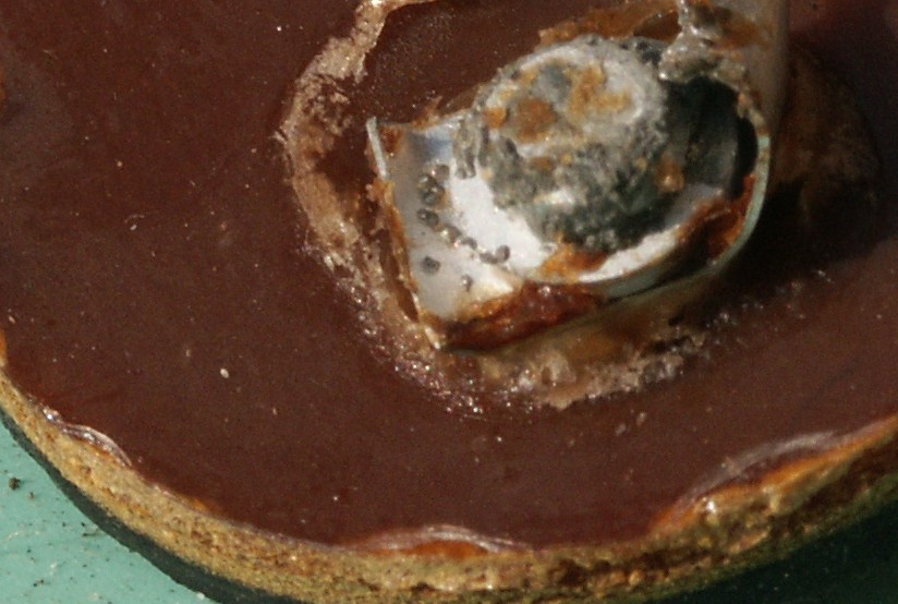 Devastating. The anode conductor has totally pulverized, some kind of corrosion is in effect and contact is loose, unstable, sometimes shows spikes have arisen.