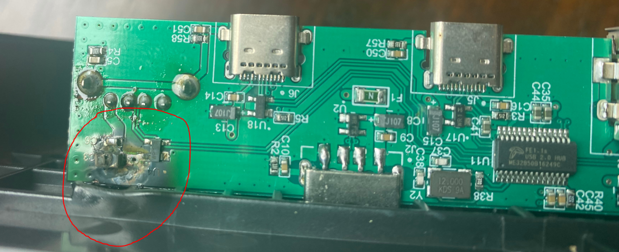 I'm curious - does anyone know what might cause a cap like this to catch on fire like that? Is it just a random manufacturing defect that can happen to anyone, or was there a design issue with the USB hub?