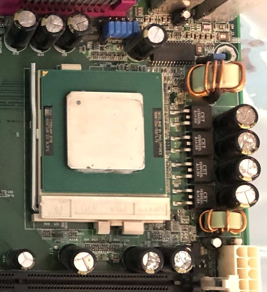 Besides, this board is too old to carry anything like FL or FJ/FJS series. Those came around later on with the Pentium 4 era, when motherboards really started needing ultra-low ESR caps. Rubycon MBZ were probably among the first ultra-low ESR series... then later on came the MCZ and custom-order MFZ series.