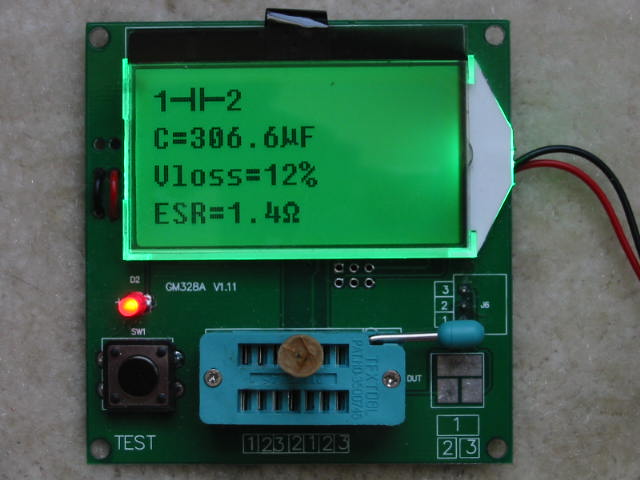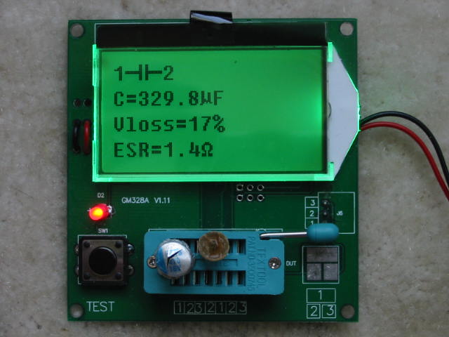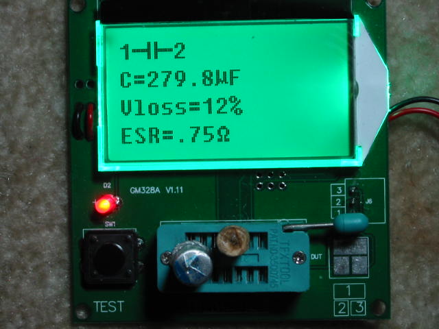 First, this is how one of these bad Sacon FZ caps (in this case, rated for 16V and 470 uF) measured on my GM328 tester: no capacitance, infinite ESR… just completely open-circuit as far as the GM328 was concerned.