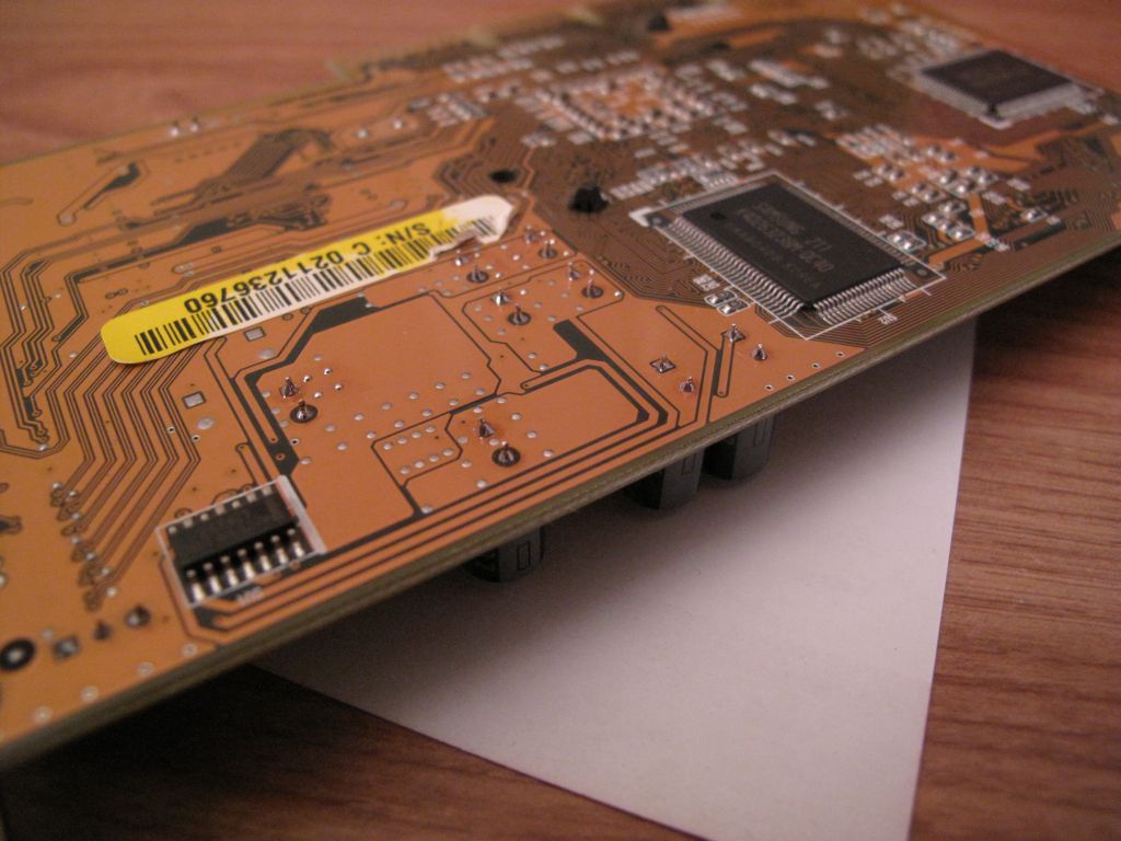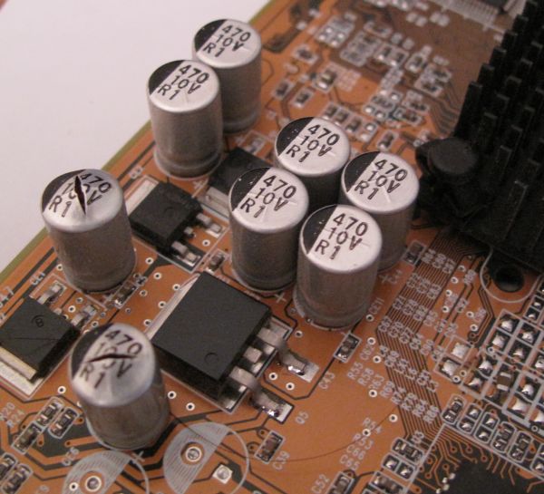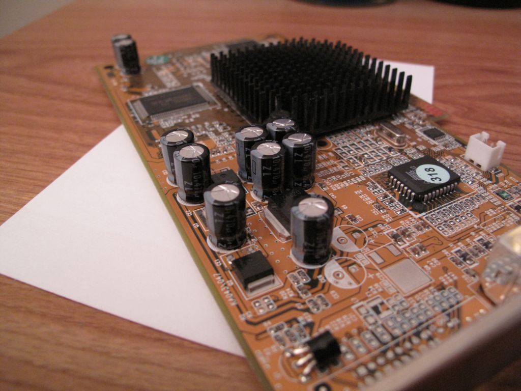 These are on a GeForce 4 MX card. I can't see who made the card. The caps are marked: