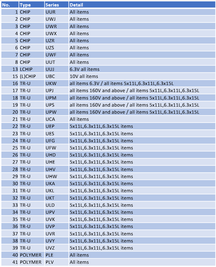 Some seem to be about size? "We are notifying you that all 7mm height UPW series capacitors have reached their End of Life. Last time to buy date is September 15,2021. End of production will be on March 31,2022."