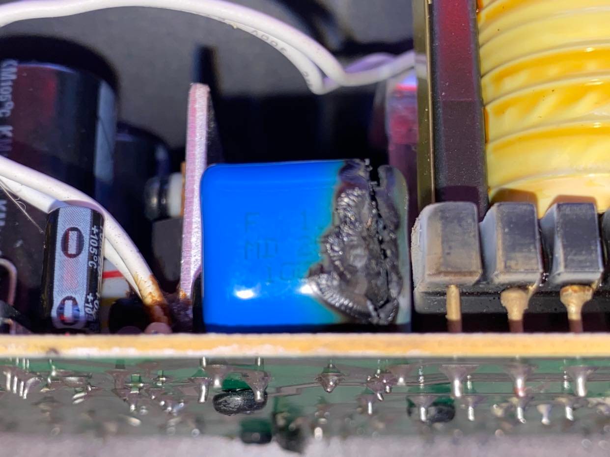 I'm repairing my Velodyne Sub, a Fiber capacitor is dead but the burn erase part of the writing, can you help me to identify it ?