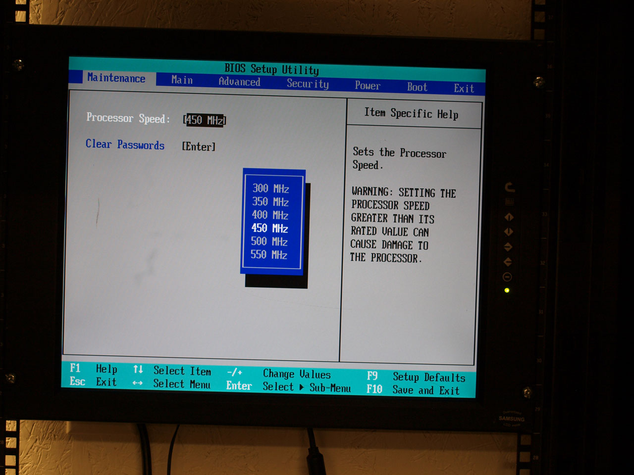 Back in the maintenance menu, which is where CPU speeds are set. The original BIOS I had did not go above 450MHz.....but since the update, I now have the full range to the max Tanner core.