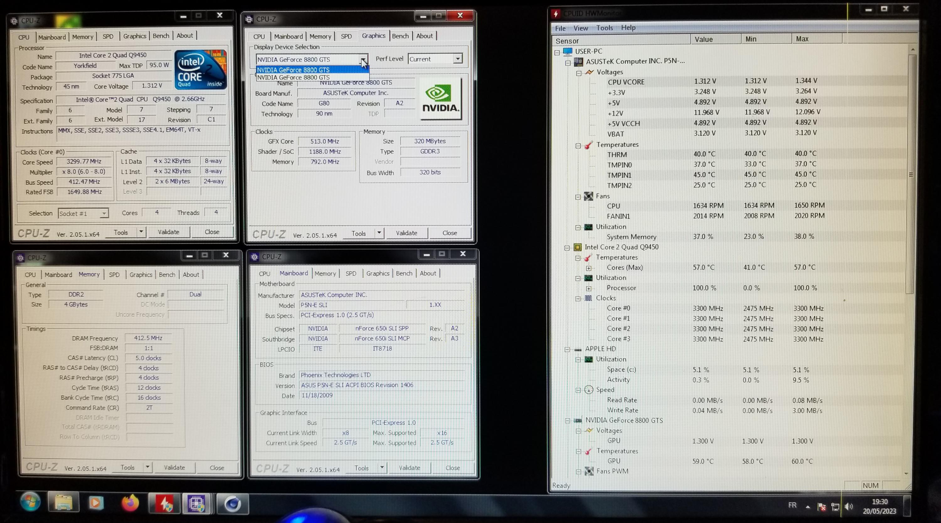 - GPUs: 2x Nvidia GeForce 8800 GTS G80 320MB