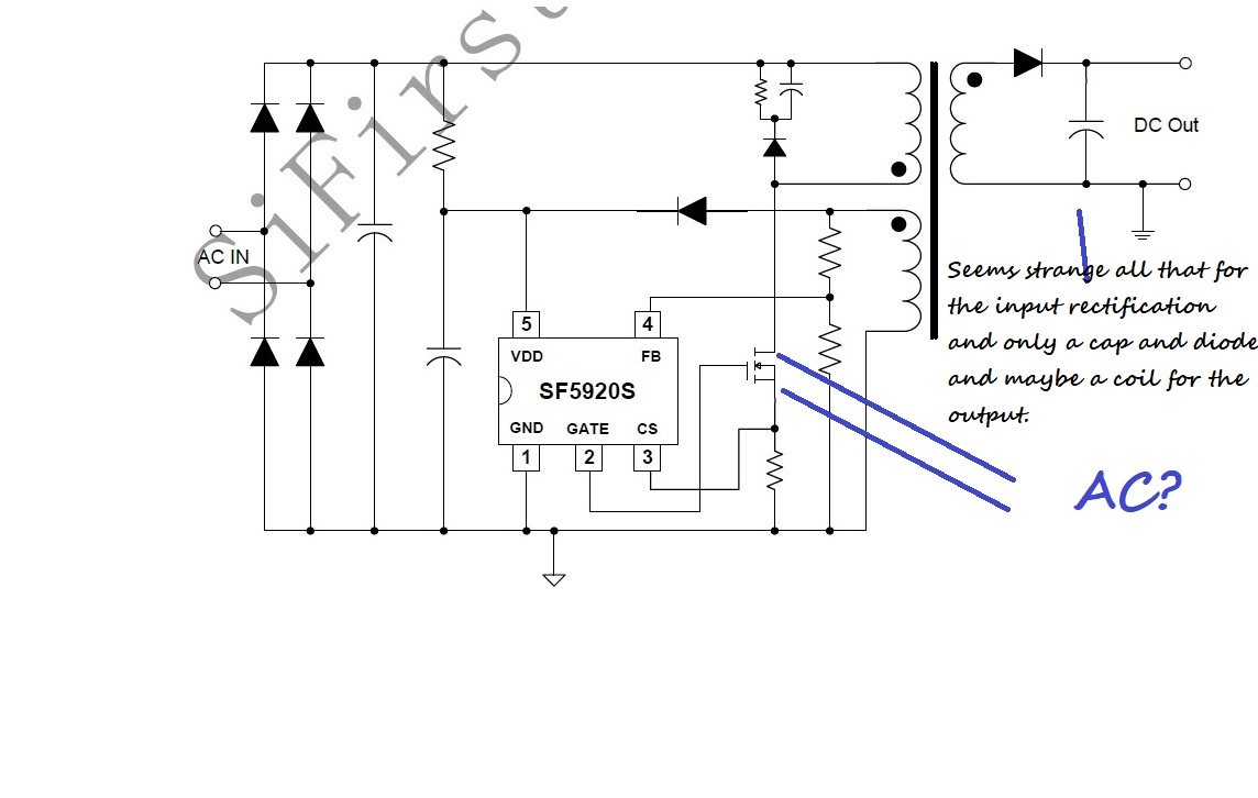 There is explanation of the rectifier bridge to the pulse width modulator, the mosfet for switching, and opto-couplers, but there is little to nothing about the AC stage of the transformer the powers the primary coil.