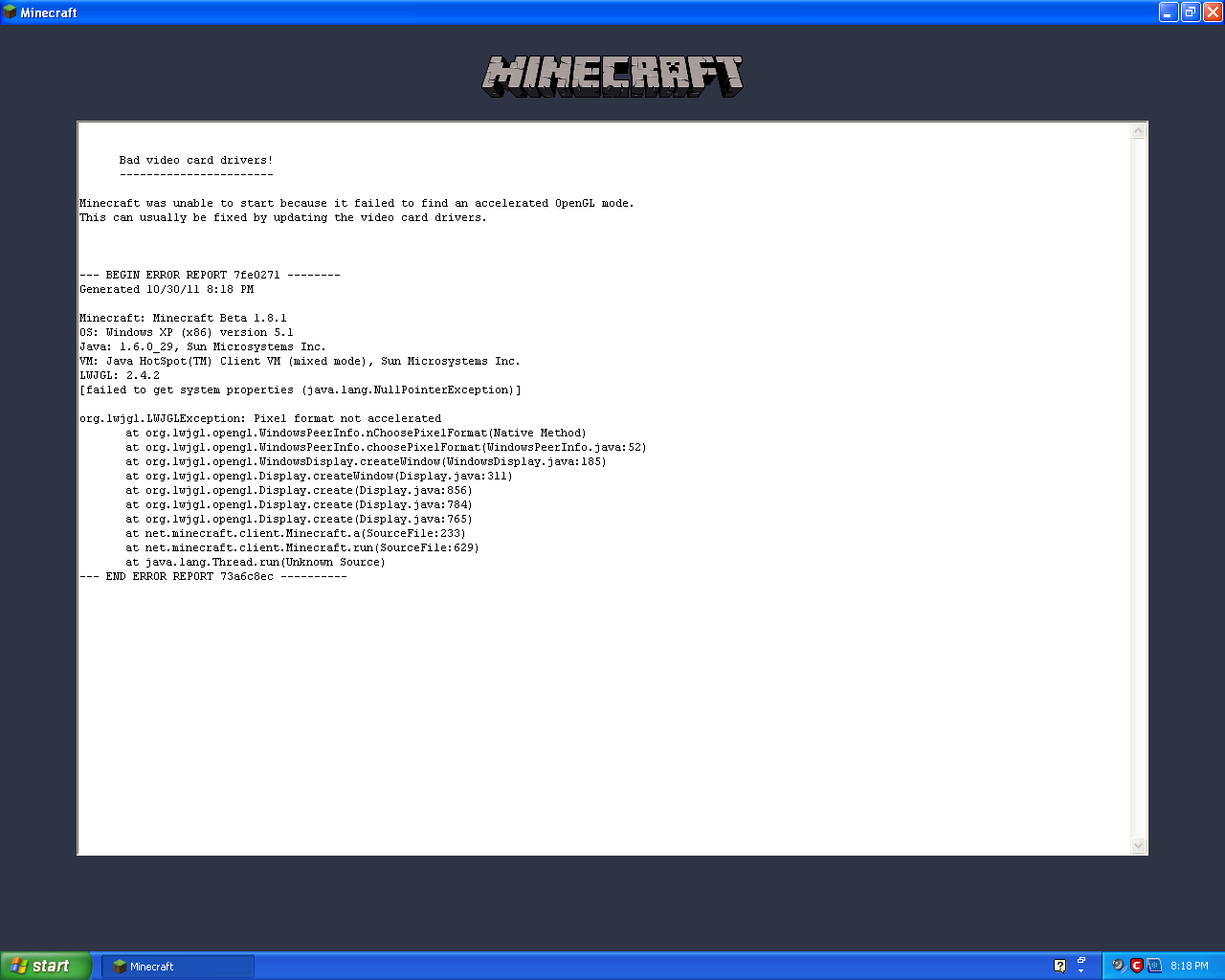 Re: Minecraft not liking Intel G31 Chipset video?