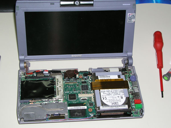 The victim, a 400 Mhz PII ultraportable with a 12gb HDD.