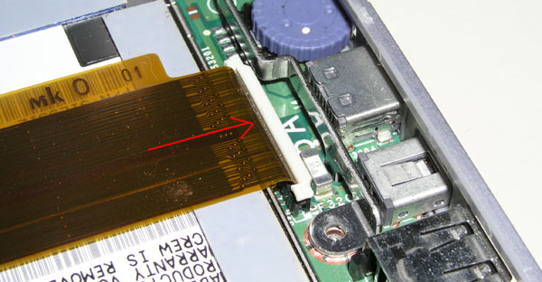 Once you have done that you may remove the screw from the left hinge on the front of the laptop. (marked in red)