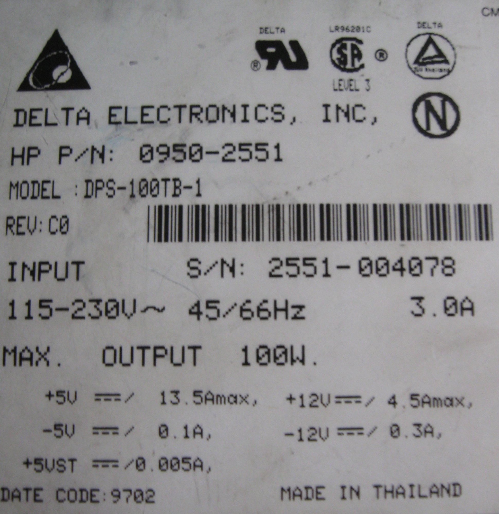 This is a 100w power supply made by Delta, which I pulled from a HP Vectra system 486 66 Mhz about 5 years ago.