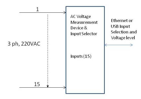 Needing to measure 220VAC 3ph on 15 different inputs and select input and report voltage RMS via Ethernet or USB to the test controller.