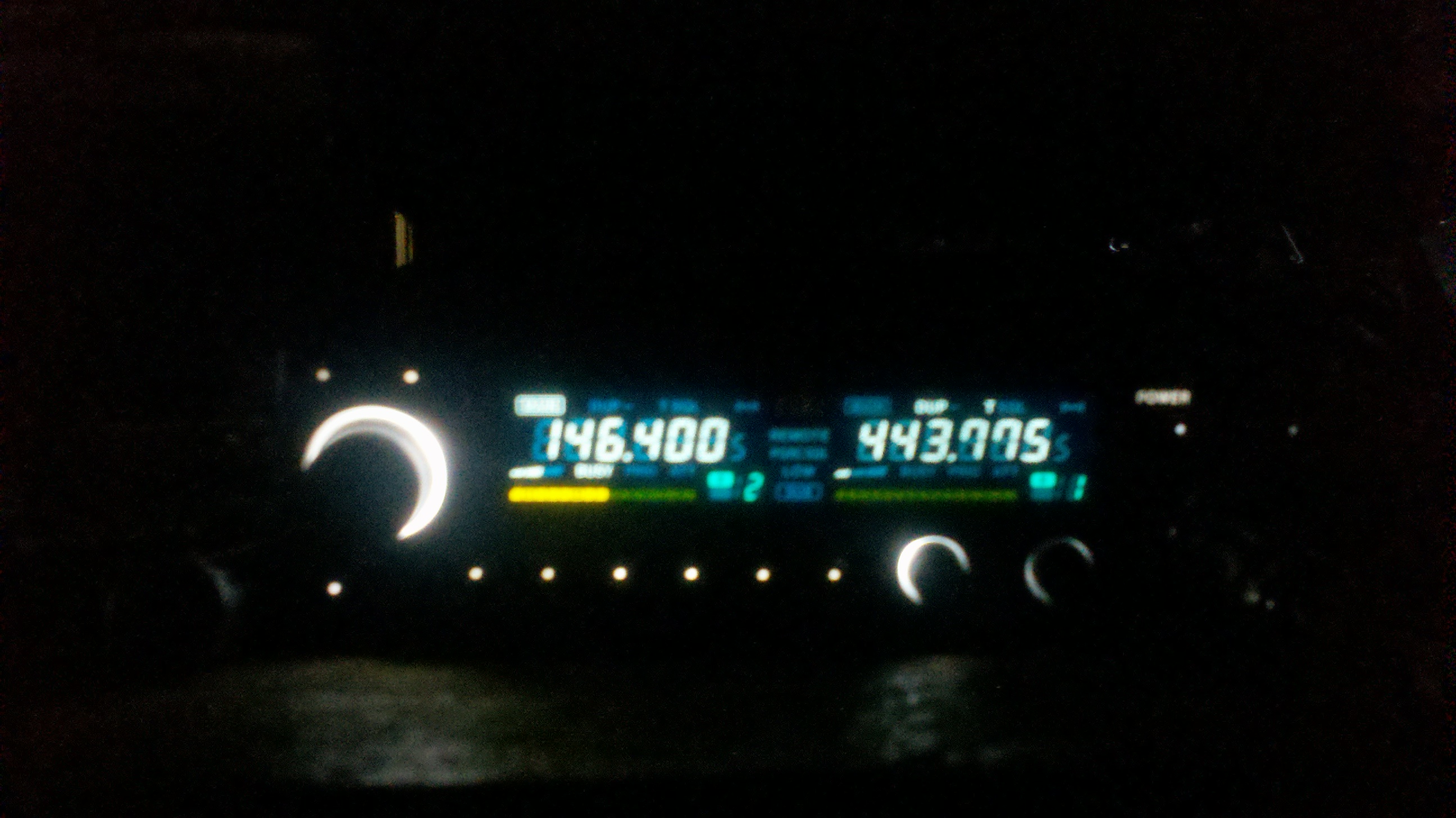 in an effort to look slick icom went to a blackout multi color display in these rigs.but the lights would have to be on full and the tiny bulbs went out fast.