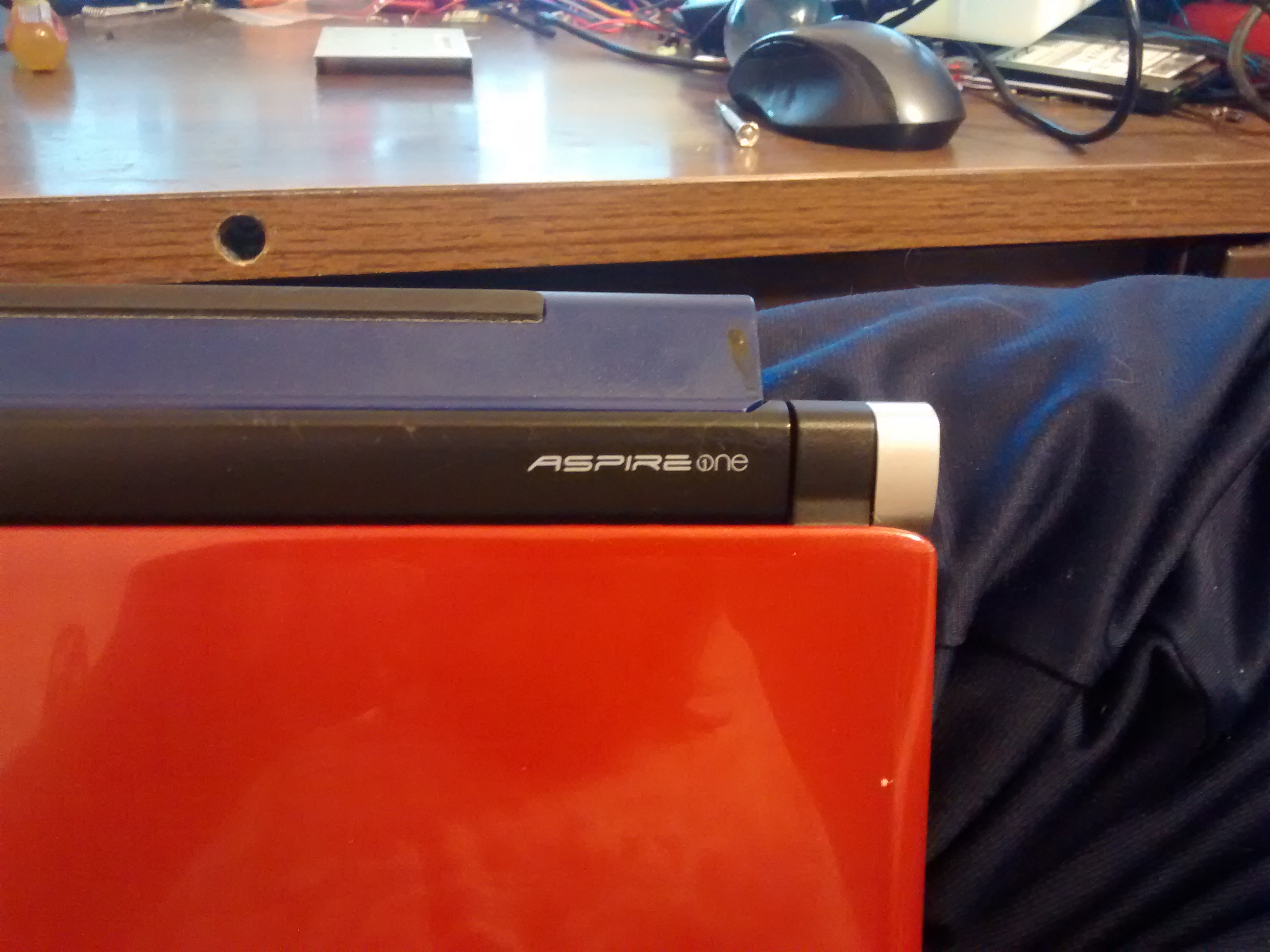I had two dead acer aspire netbooks. I made one with the good parts. Blue one had a good everything but display and SDcard slot. The red one had a bad motherboard, no ram, no HDD. I put the red display on the blue unit and put the SDcard slot in it too. The touchpad buttons on the blue one had gouge in it, so I put the red one in its place. It's complete with a bodged in 64gb SSD and a crap looking (internally good. Protected well. LG cells!) Battery. It also has a RTL8188 N wireless in place of the atheros G wireless.