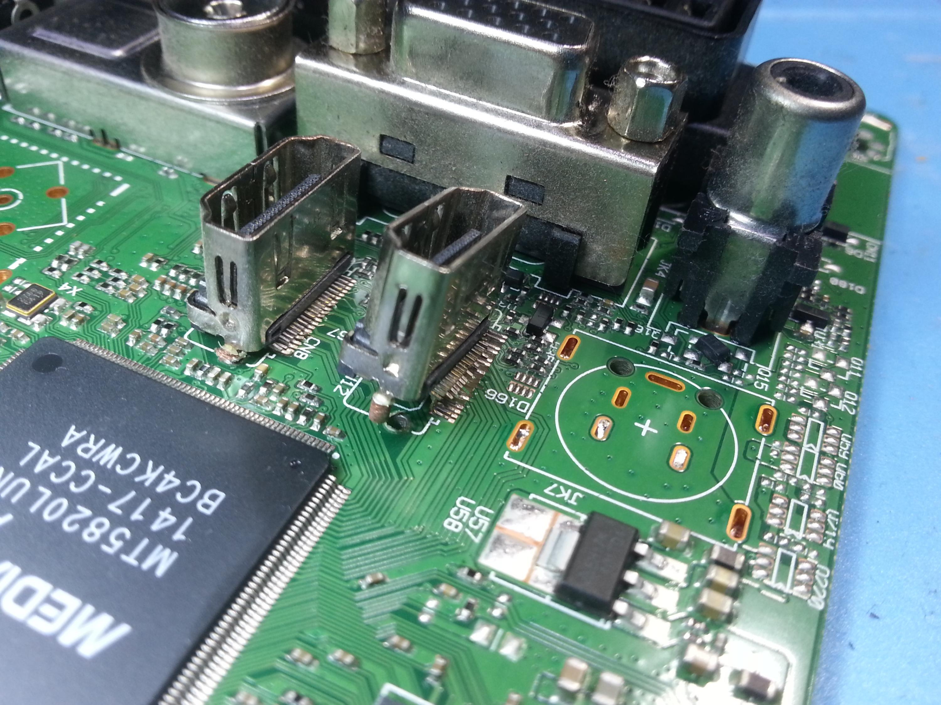 The two brown jumper wires were added by me to fix the burned track underneath.