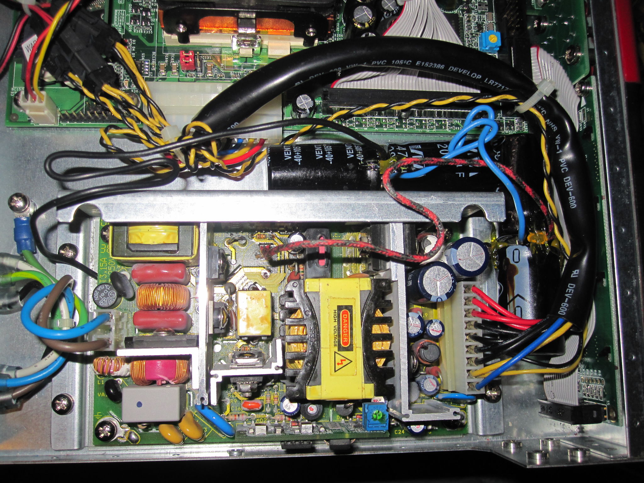 Also, I'm not sure if installing a big (1-3.3 uF) 400V/450V film cap in parallel with the APFC cap would help with some of the high-frequency suppresion, but I did it on my ThermalTake M850W PSU that had a blown APFC cap. I'm hoping the film cap basically makes it easier for the 'lytic APFC filter cap.