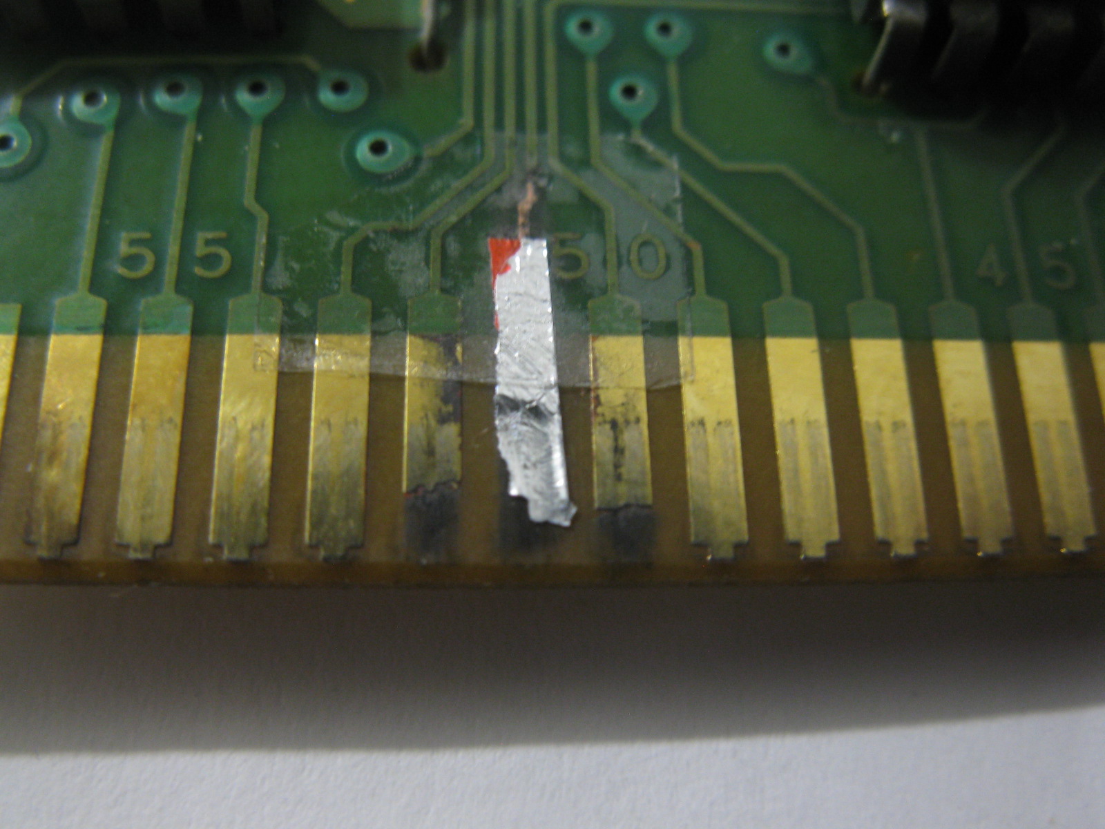 try to see if u can get some gold metal polish to clean up and remove the corrosion on the other goldfingers too! corrosion can spread so u must remove the corrosion or u'll be repeating the repair on the other goldfingers as well in some years to come!!