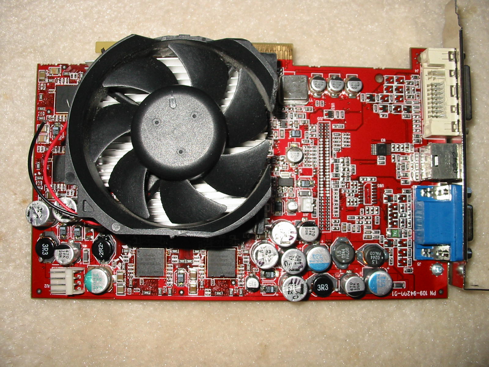 ^ This one shows the half fan I used in the 7600GS above. Originally, I was going to use it with this Radeon card but decided it was too heavy and bent the PCB too much so I decided to use it in the 7600GS instead. I do have the other half of that fan, though, so I can always put 1 on this card too