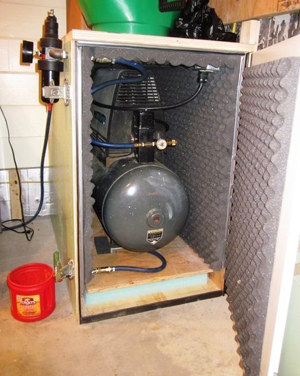 The one I attached as an inline pick was made out of 3/4" plywood lined with sheetrock and acoustic foam and the compressor insulated with a few inches of foam underneath it. He removed the petcock and ran it with a hose to a valve the outside of the box for easier purging.