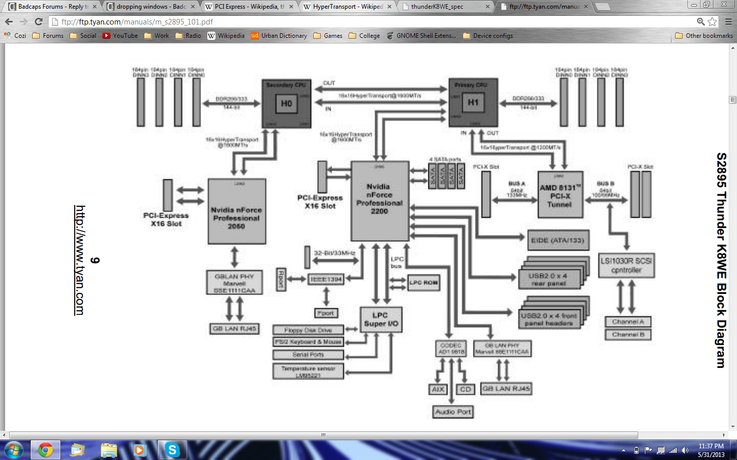 Second, the links may be shared y other devices on the chips, but it's mostly low load devices, the fastest being the SATA ports. However, the high load SATA drives are on a RAID card via the PCI-X controller, which on a separate link/chip (AMD 5131, never had an issue with that one since I don't hot swap)... So there you go, full PCIe speed to the cpu's (minus any converter chip losses).