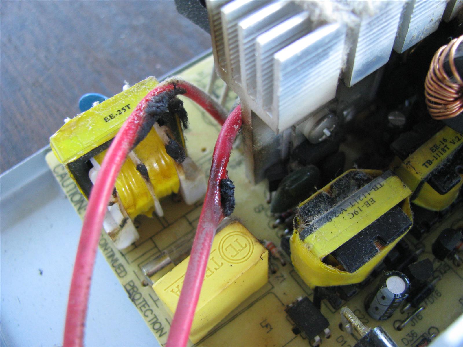 ...which melted the wires on the voltage switch and charred the EMI filter coil somewhat,