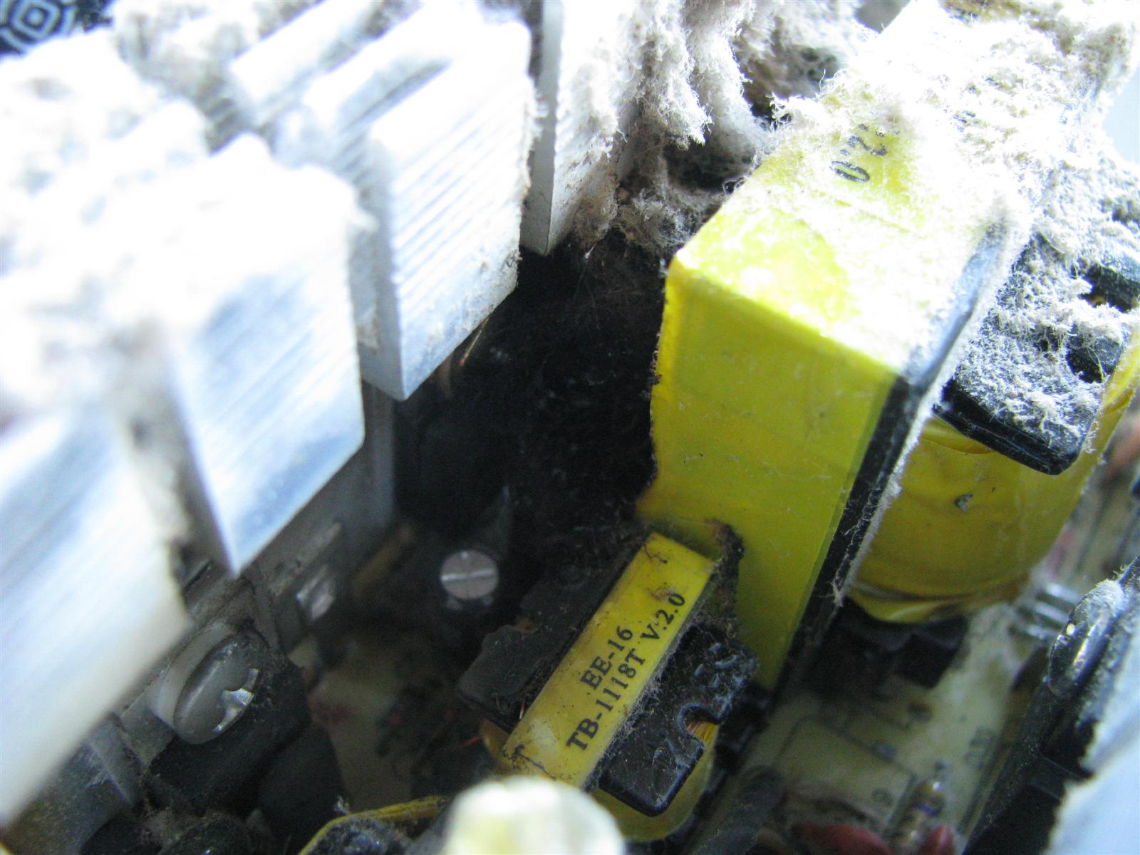 As you can see, there is a fair amount of dust packed around the switching transistors.