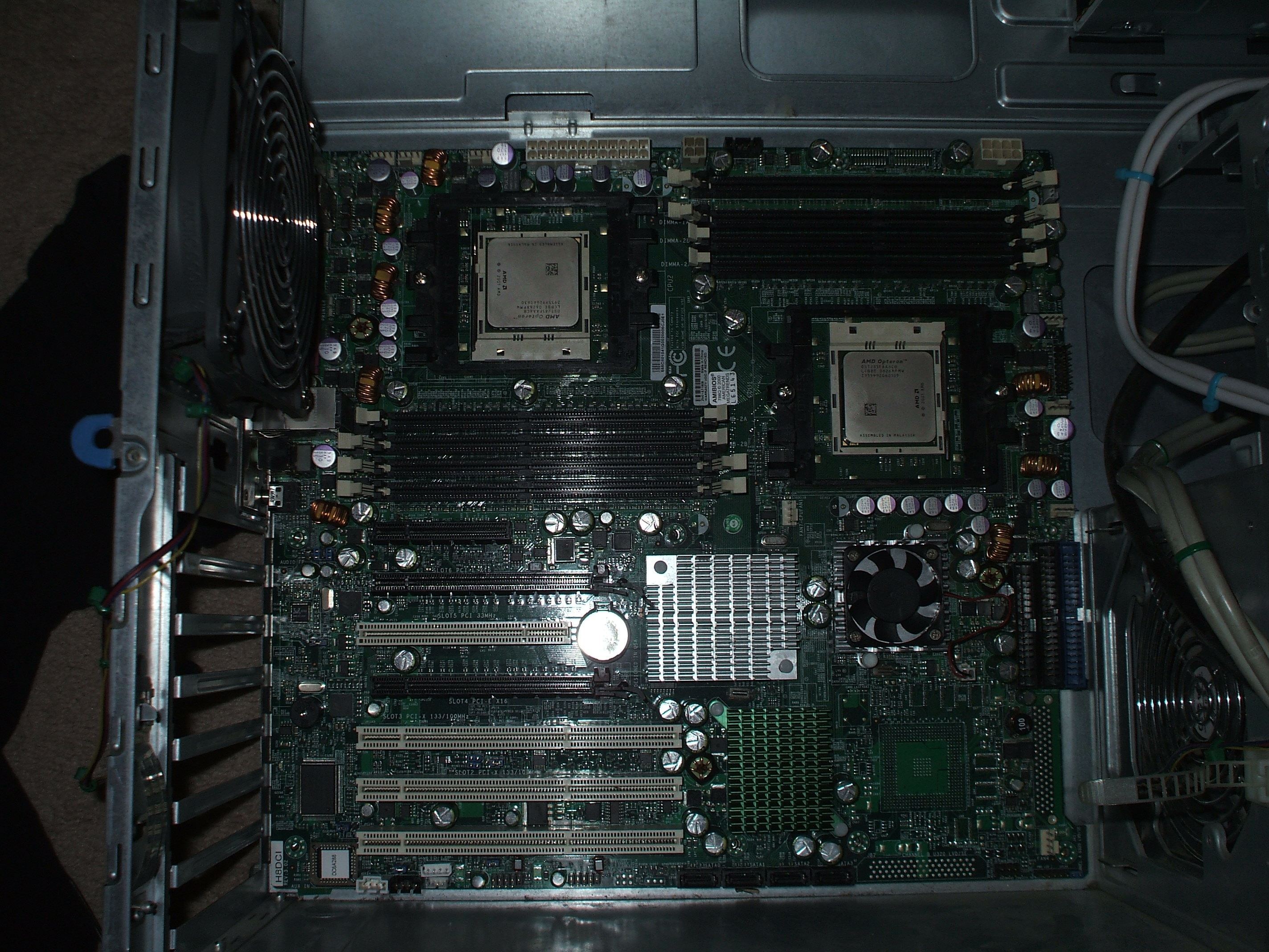 With those issues fixed, I was able to drop in the board (along with some 85W 2.6GHz Opteron X2 285's):