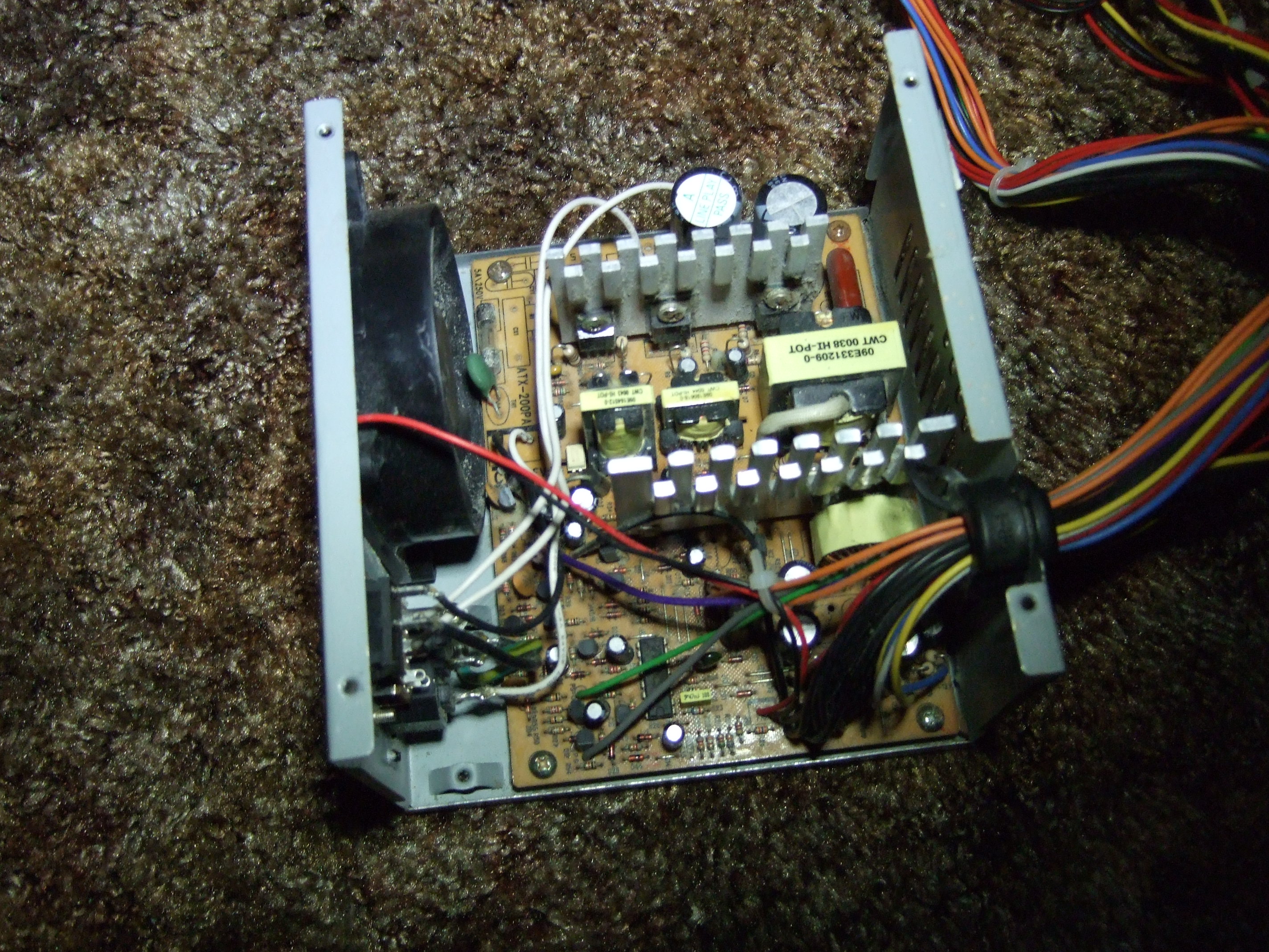 ) and booted it up and it worked! I tried uninstalling a stupid program but the pc crashed while doing so and the hard drive got corrupted. I was upset so I just went to bed. The next morning I came down to find that the computer would not turn on. I pulled out my psu tester and the power supply was shot. I took a spare power supply, tested it (worked fine) and plugged it in. This psu had no white (-5v) wire but the old one did. I plugged the psu in and the instant I turned the switch on (psu switch) the fans turned on and the hard drive spinned up. The power button did nothing and there was nothing on the screen. I tried it with a psu that had a white wire but same thing. At that time I opened up the fried psu and there was severe meltage.