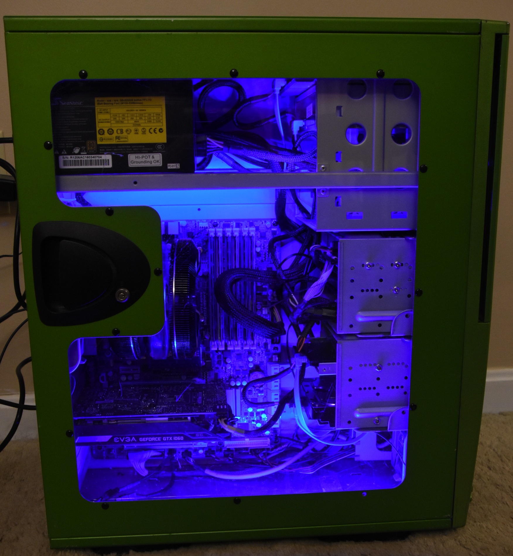 GPU: Nvidia GeForce GTX1060 (I know a GTX1060 is a bit too new, I was going to use a GTX780, but it was too long to fit with the lower HDD cage installed, and the GTX1060 provides similar performance)