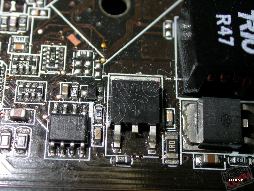 On a Gigabyte 965P-DS3P board, there were outlines and mounting holes for heatsinks on the VRM MOSFETs, but the heatsinks were not fitted. VRM MOSFET heatsinks were fitted on a higher end board.