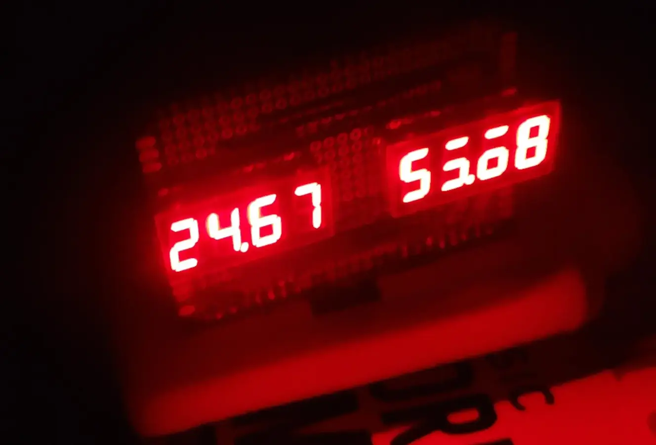 Now that my de-soldering gun is working i was able to remove this panel i made about a week before i noticed a issue the F segment of digits 2 and 3 would go out, digit 2 would go before digit 3, but would come back after the humidity got down from running the ac (note the weather outside is 30.5 / 74%; panel data is from a BME280)