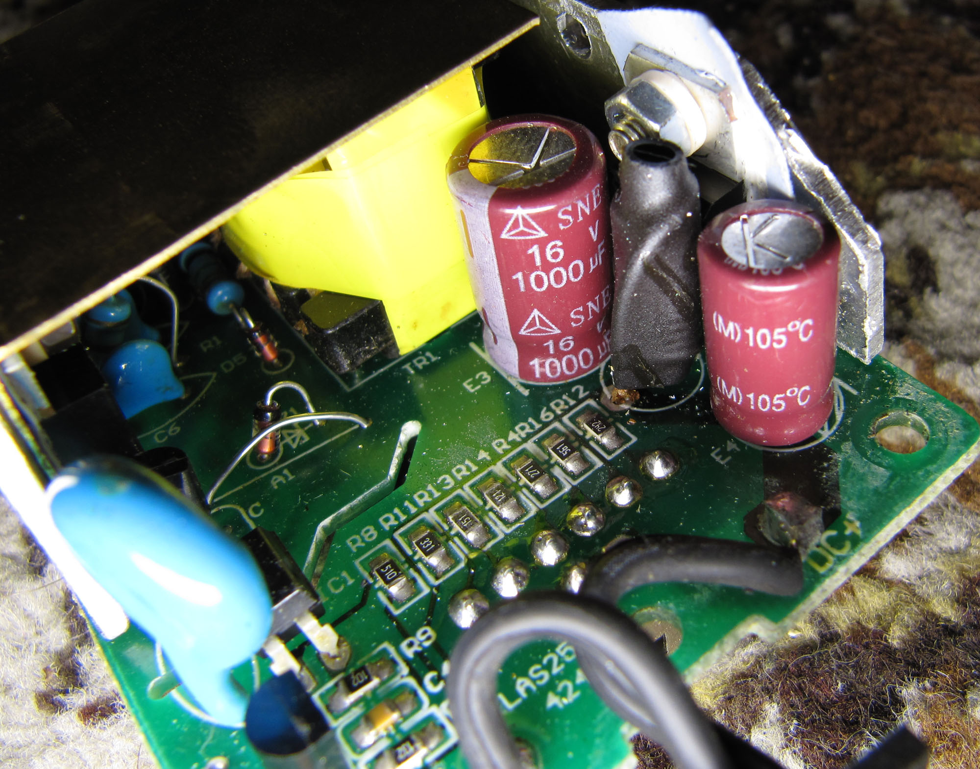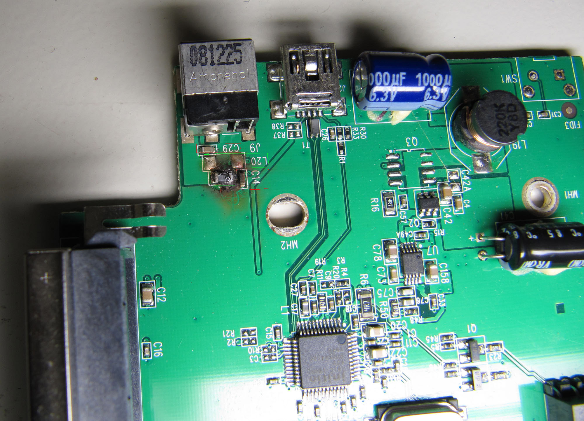 Customer had lost/broken the original psu and bought a general purpose power supply with variable voltage selector and the ability to remove dc jack and fit it backwards. He sent -12V at the controller and some smd caught fire, as you can see in the pictures attached.